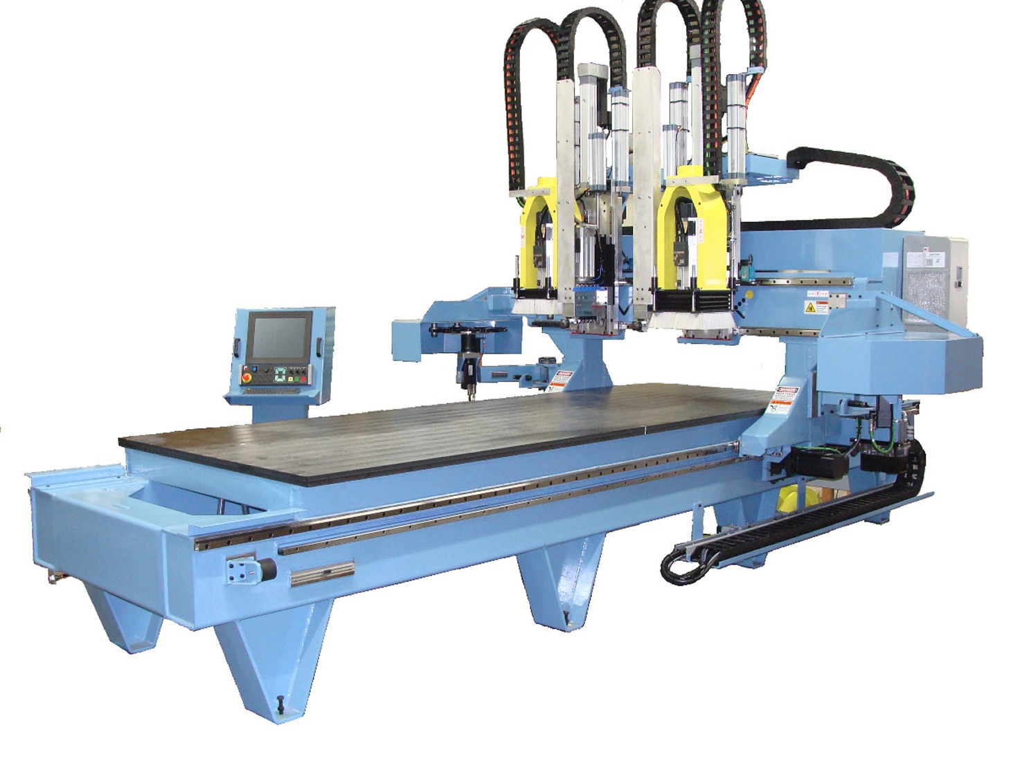 The NE Series machining centers are designed and built in the United States, can be custom configured to offer broad industry applications. NE Series features a compact CNC machining center with heavy-duty moving bridge structure, extra rigid construction, and is tailored to enable even the most intricate of jobs to be rapidly, reliably, and flawlessly executed. Configuration options include integrated tool touch off, point-to-point drill units, twin independent spindles, ultra-sonic cutting, 8-24 tool carousel, up to 20hp spindle motor, up to 600 mm (26") Z Axis Travel, multiple table sizes, custom table fixtures, auto loading and unloading roller-hold down, vacuum pumps, etc.